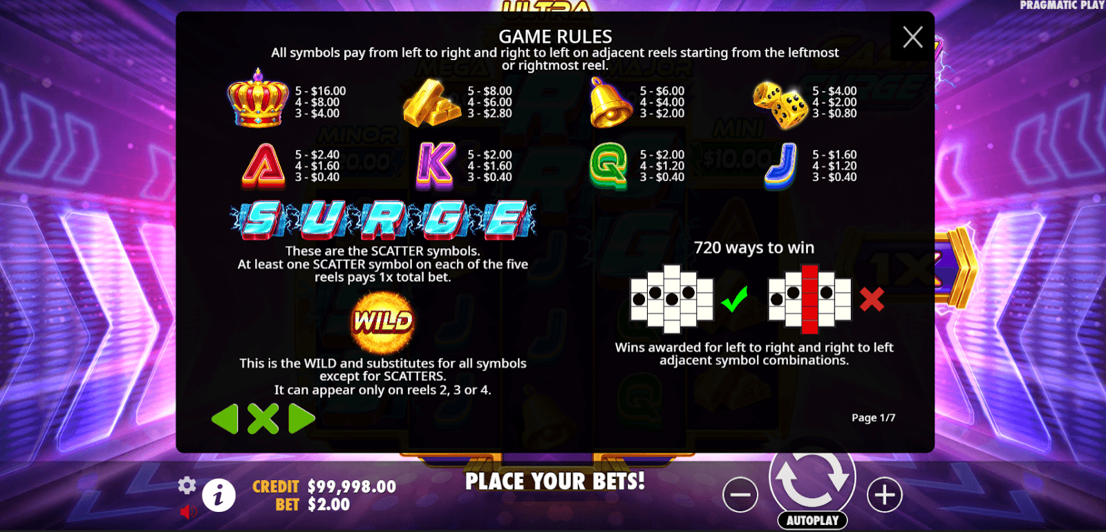 - SURGE gratis spins — verzamel de letters S-U-R-G-E om vier spins vrij te spelen terwijl alle huidige progressieven zijn vergrendeld; extra letters voegen +1 spin toe en de bliksem blijft de prijzen verhogen.